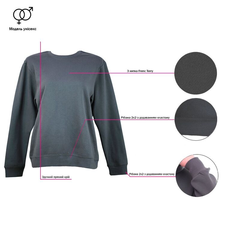 Унисекс свитшот Nikibo Terry — практичная модель из ткани French Terry (3-нитка), которая сочетает износостойкость и комфорт.