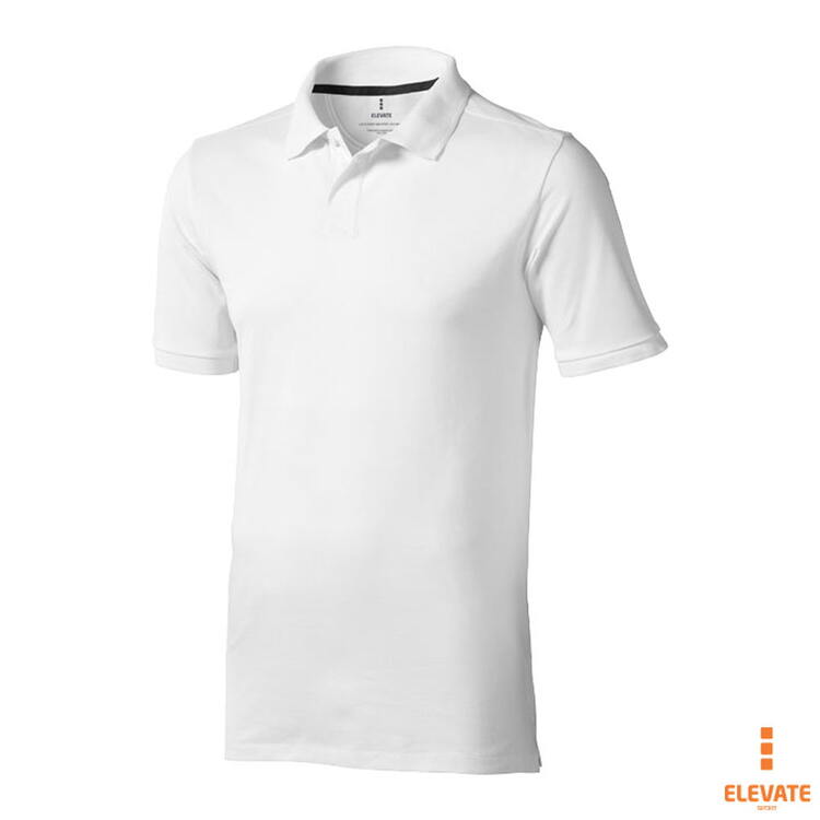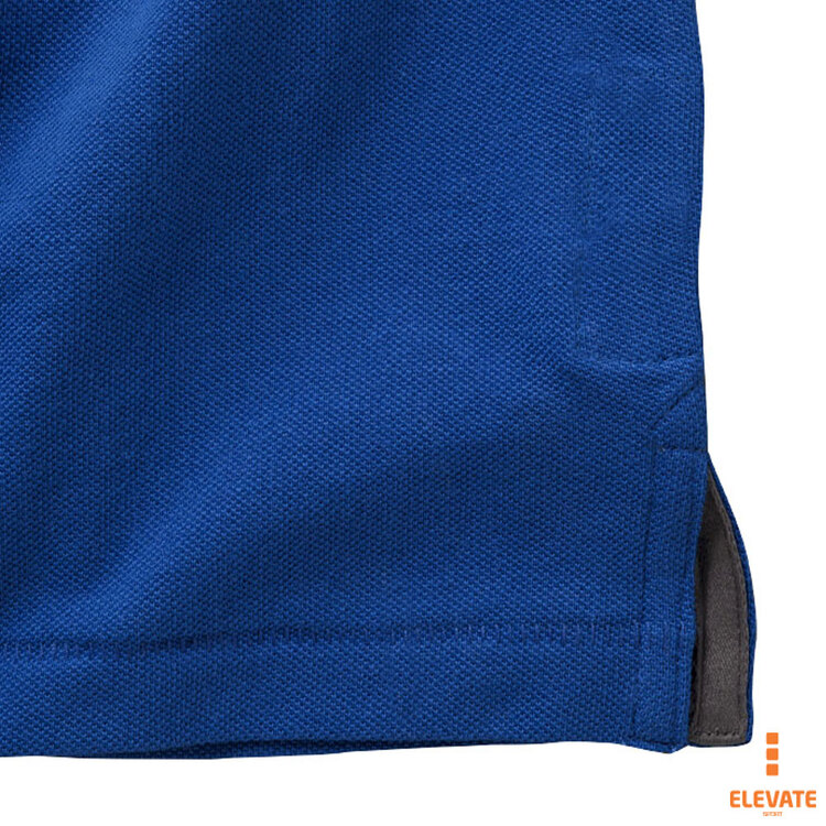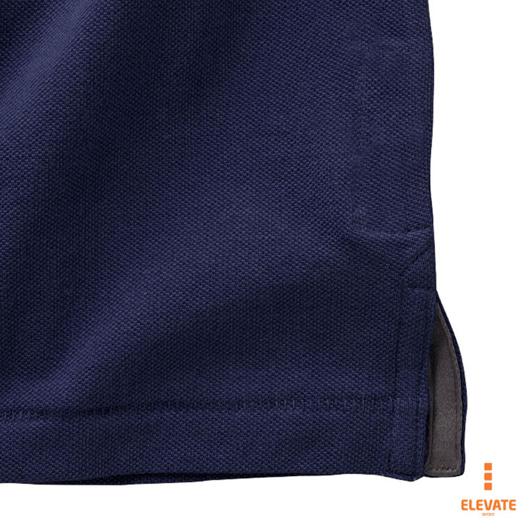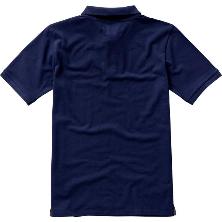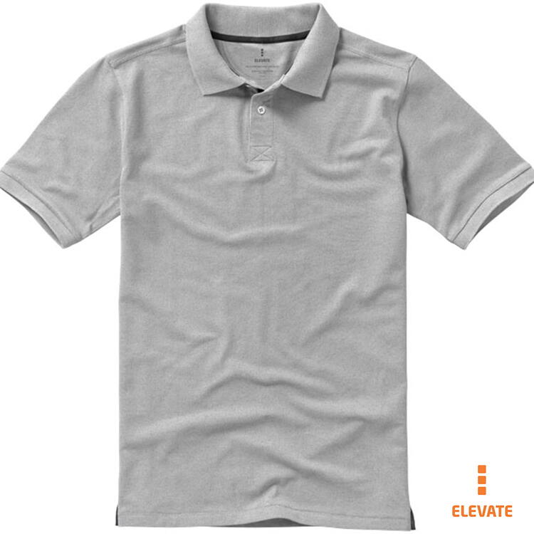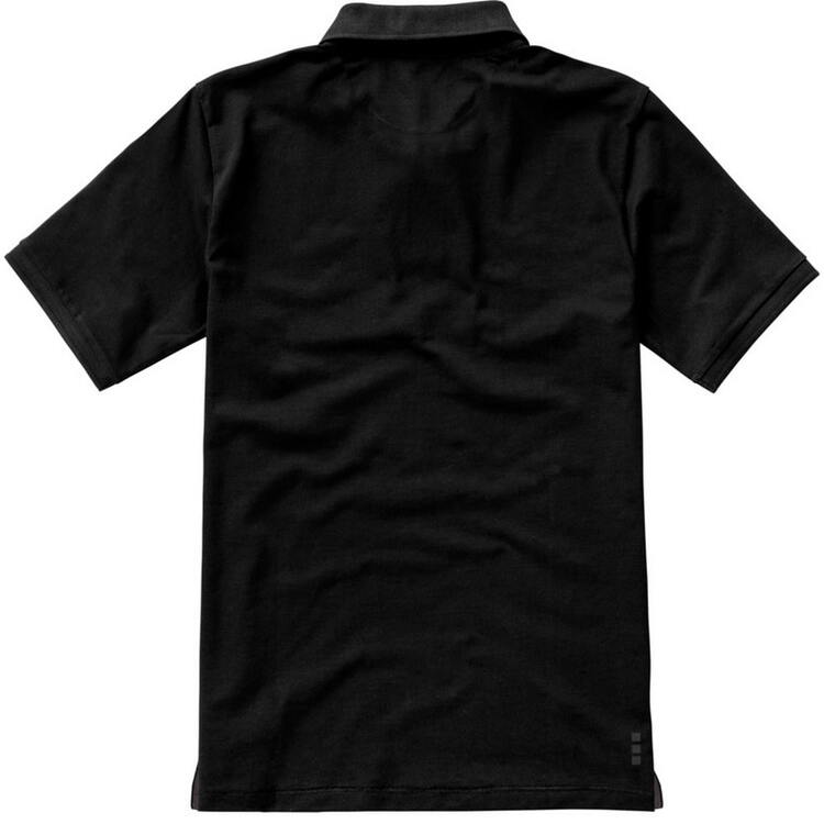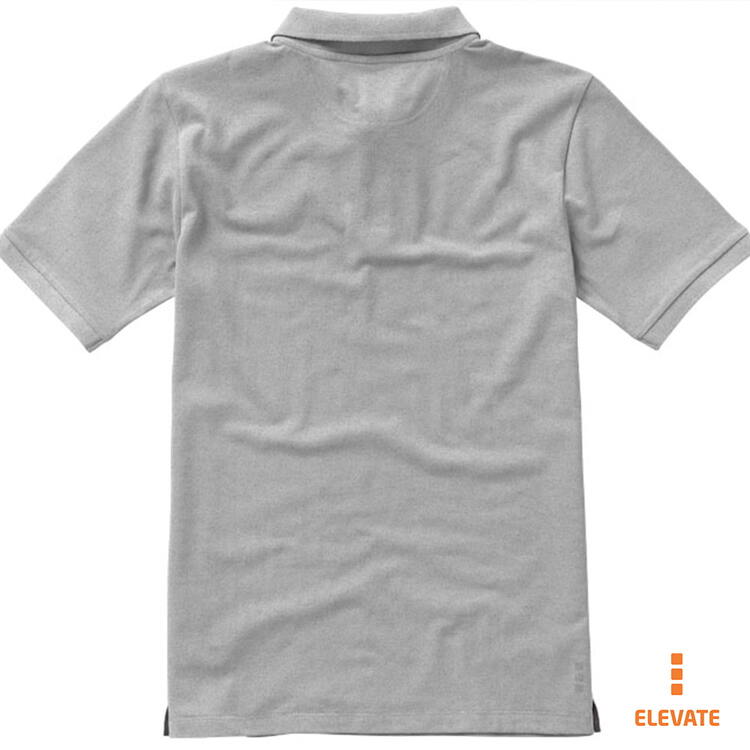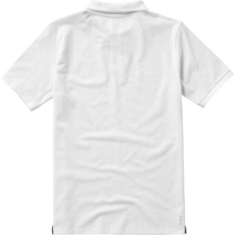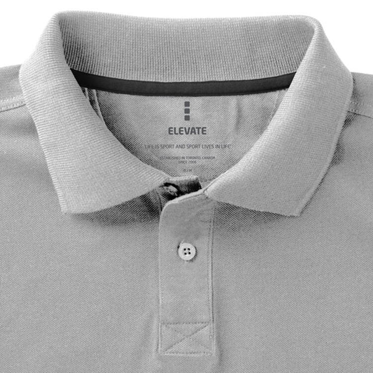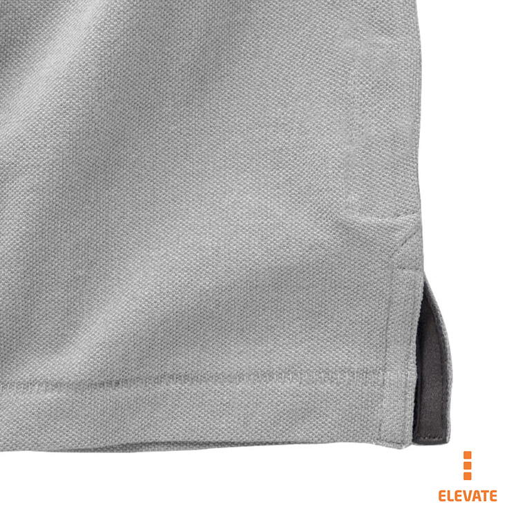 Мужская футболка-поло из трикотажного пике. Воротник и манжеты с гладкой вязкой в рубчик. Планка с застежкой на двух однотонных пуговицах с гравировкой. Атласный кант по линии горловины. Боковые разрезы с атласной окантовкой. Опущенный плечевой шов, цепная строчка. Этикетка в виде термопереноса на изделии. Материал: 100% хлопок, серый цвет - 90% хлопок, 10% вискоза. Плотность ткани: 200 г/м².