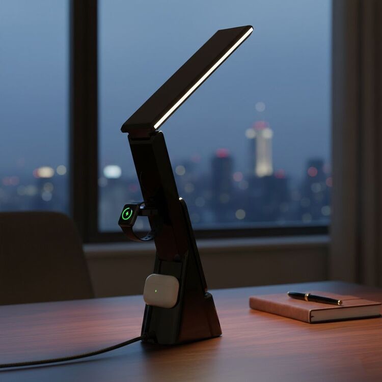 Светодиодная настольная лампа TheGeneral GlowUp с беспроводной зарядкой (4 в 1) — многофункциональный LED-светильник, сочетающий настольную лампу, ночник, электронные часы и беспроводное зарядное устройство в одном корпусе.