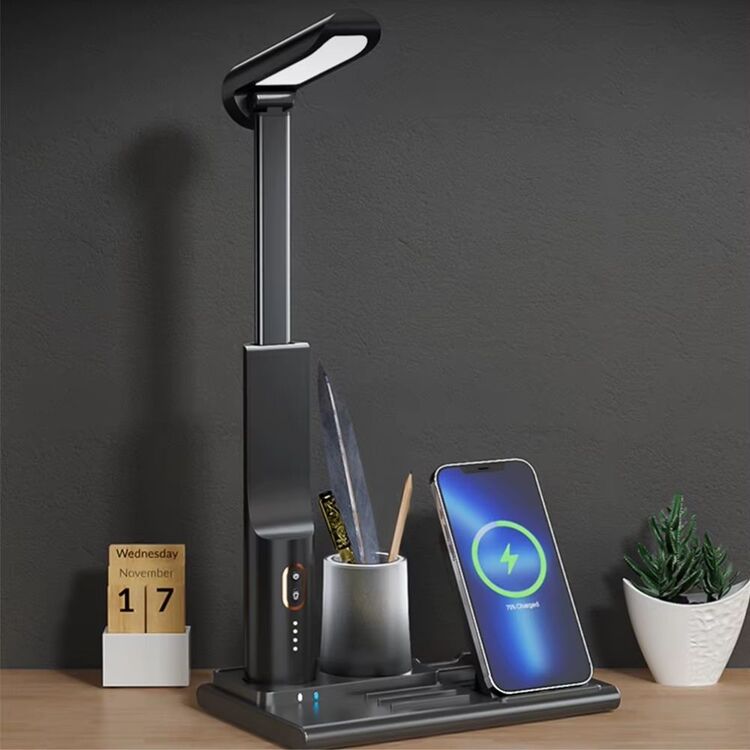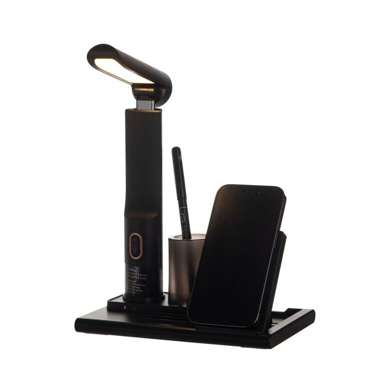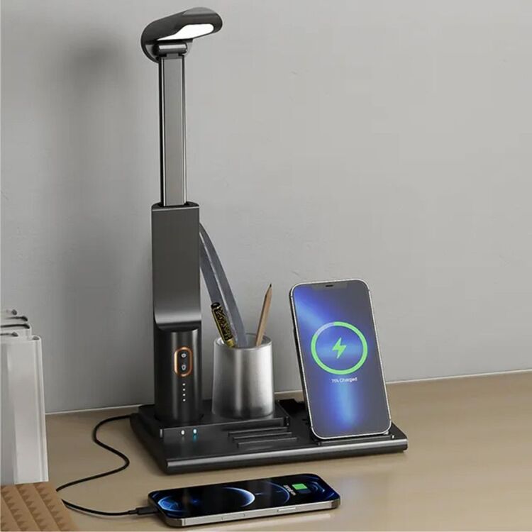Светодиодная настольная лампа HaloFlow со встроенной беспроводной зарядкой и органайзером для ручек – это современный многофункциональный светильник 3 в 1, который подойдет для офиса, комнаты подростка, рабочего кабинета или гостиной с письменным столом.