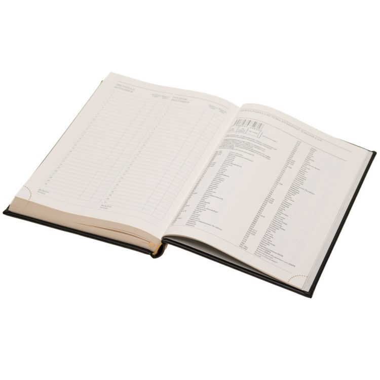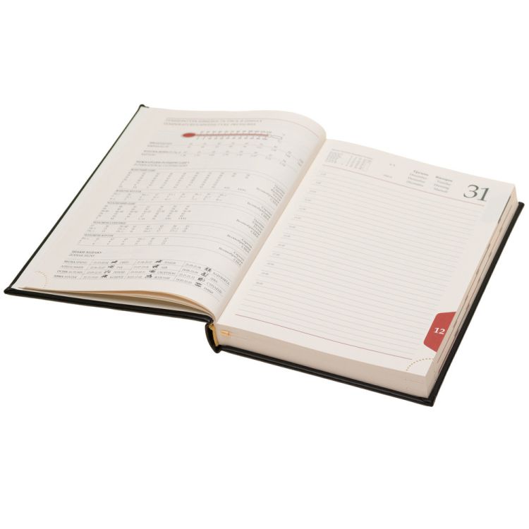 Датований щоденник. Формат А5 (145 x 205 мм). Папір сертифікований FSC. Тверда обкладинка з високоякісного італійського шкрізаму.